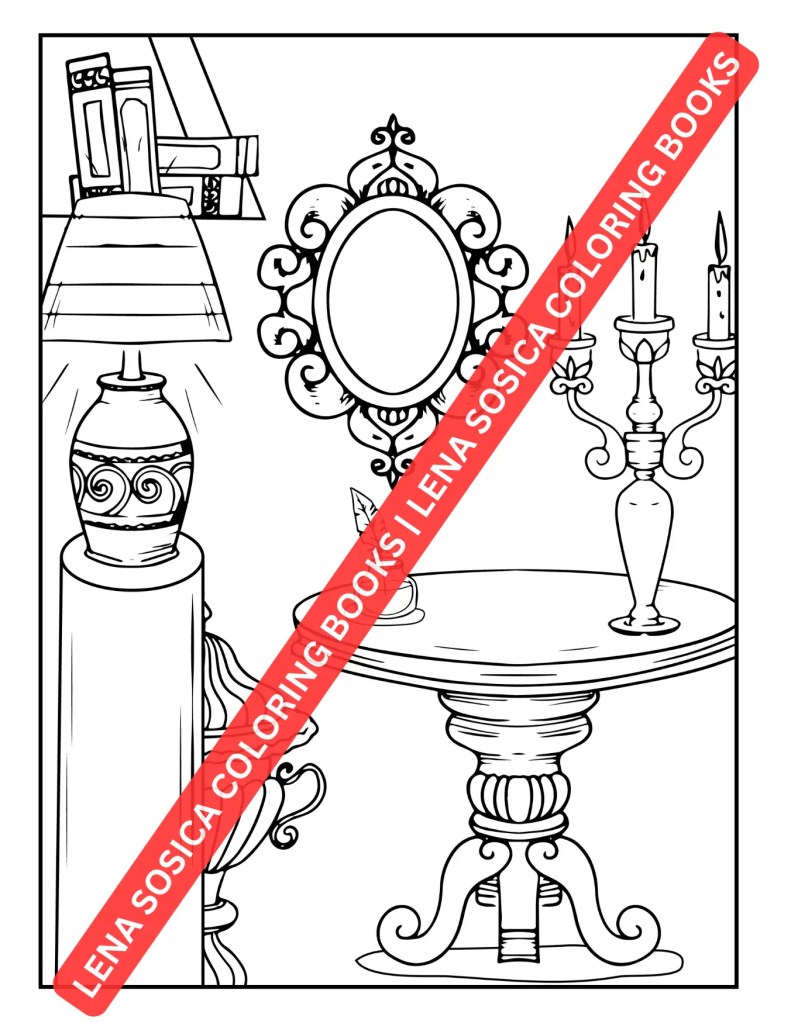 But it’s not just about the buildings โ the “Vintage Houses Coloring Book” also features intricate illustrations of vintage furniture, decor, and design elements that adorn these spaces. Discover ornate chandeliers, elegant mirrors, antique candle holders, and exquisite details that define the aesthetic of the era. ๐ฐ๏ธ These illustrations provide an opportunity for you to explore different color palettes, experiment with shading techniques, and breathe life into the enchanting world of vintage design.